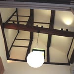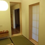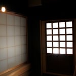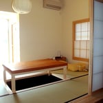奈良市郊外にある築100年の古民家です。玄関脇の応接間として使われていた部屋の床、壁、天井をめくり、床は畳敷きに掘りこたつを設け、壁はしっくい鏝むら仕上げにしました。天井は梁や束、貫を表しの勾配天井とし、壁と同じしっくいで仕上げました。