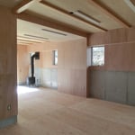 すばらしい眺望をいかして2階にワンルームのようなリビング、ダイニング、キッチンを設け、気持ちのよい空間になりました。冬は1階の仕事の作業場に設置した薪ストーブの暖気で2階もぬくぬくです。