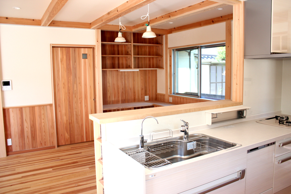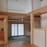 柱は奈良県産の桧、梁は天然乾燥の奈良吉野杉。その木を1本1本選別し、それぞれの木のねじれ、曲がり、歪みといった木の個性を読み解いて適材適所に 配置し、手作業で加工していく、大工さんの「手刻み」加工で構造を見せる真壁(しんかべ)づくり。寧楽工舎のこだわりの、ゆっくり丁寧に手間ひまをかける家づくりです。
