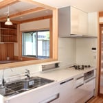 デッキに面するフルオープンのサッシを介してデッキも室内の一部のように広く感じることができます。LDKからはデッキの向こう側に庭や家庭菜園の緑を眺めることができます。