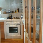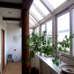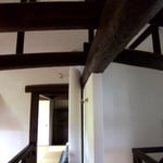 奈良市の有名カフェ、くるみの木のオーナー石村由起子さんのご自宅。木村の処女作です。基本設計、実施設計、施工管理を担当しました。壁も天井もしっくい塗りまわしで、構造材を古色塗りで見せています。1階はプロバンス風、2階は古民家風の空間とし、大きな吹き抜けでつなぎました。