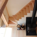 住まい手さんこだわりの薪ストーブであるイエルカの「どんぐり」を設置した吹き抜けの居間を家の中心に、ワンルームのようにLDKを配置しました。